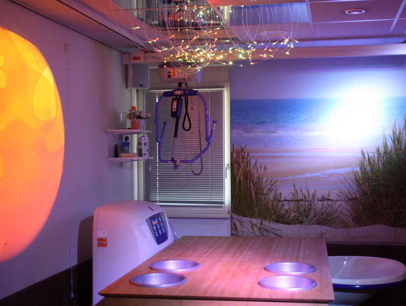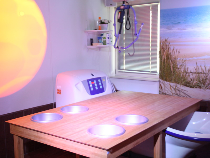 In Bunschoten hebben wij een snoezelbadkamer gerealiseerd waarin wij een handgemaakte voeltafel hebben geplaatst. Omdat deze voeltafel opklapbaar is, wordt de ruimte in eens multifunctioneel.
